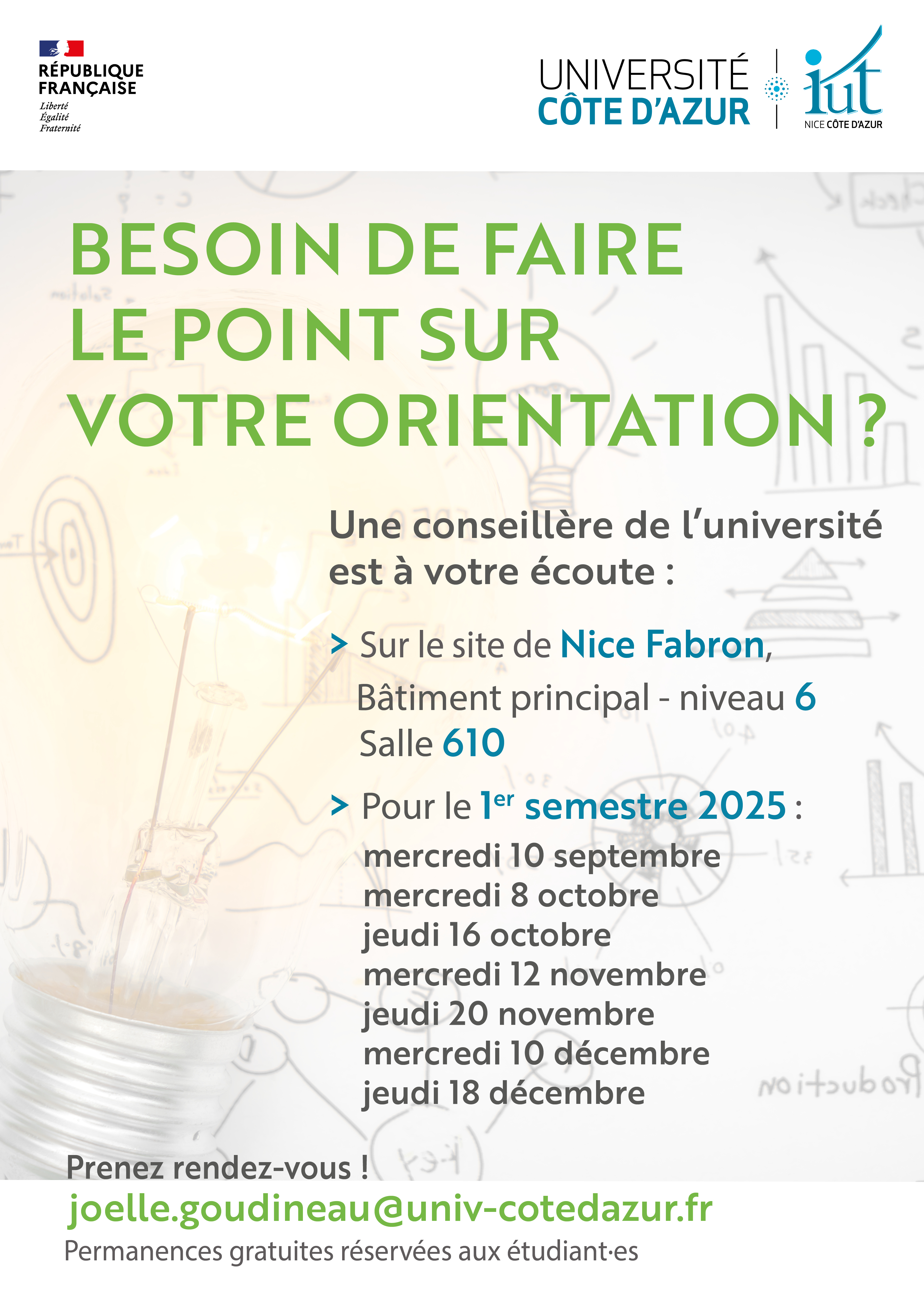 Une équipe de conseillers d’orientation d’Université Côte d’Azur est présente pour vous informer, vous accompagner et vous guider dans vos choix.