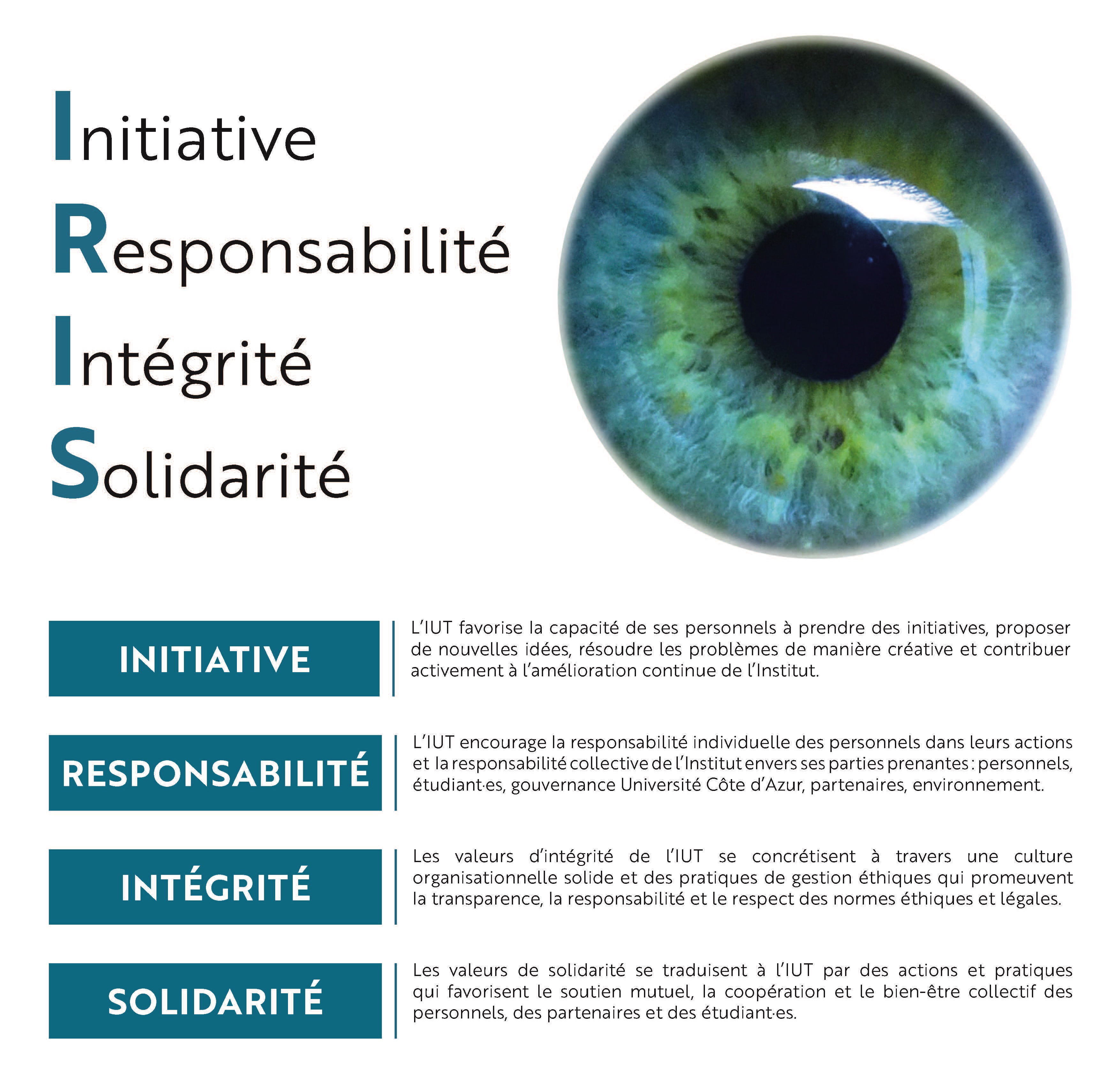 L'Institut engage ses parties prenantes internes et externes à partager ses valeurs.